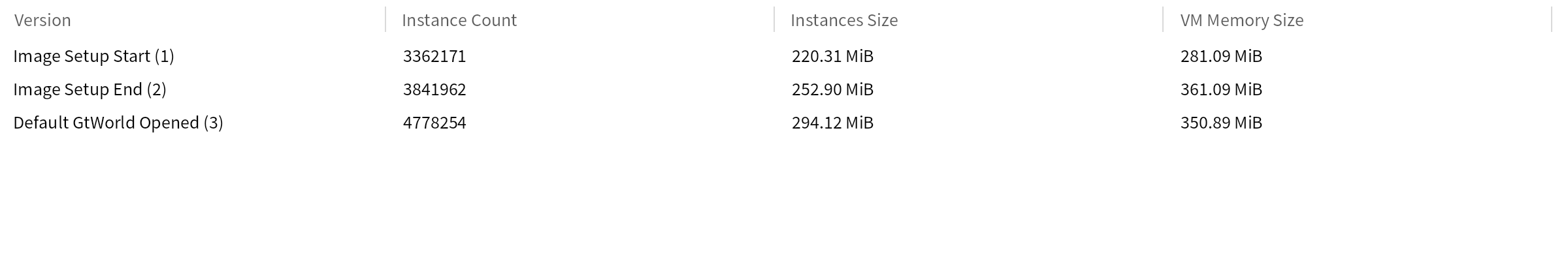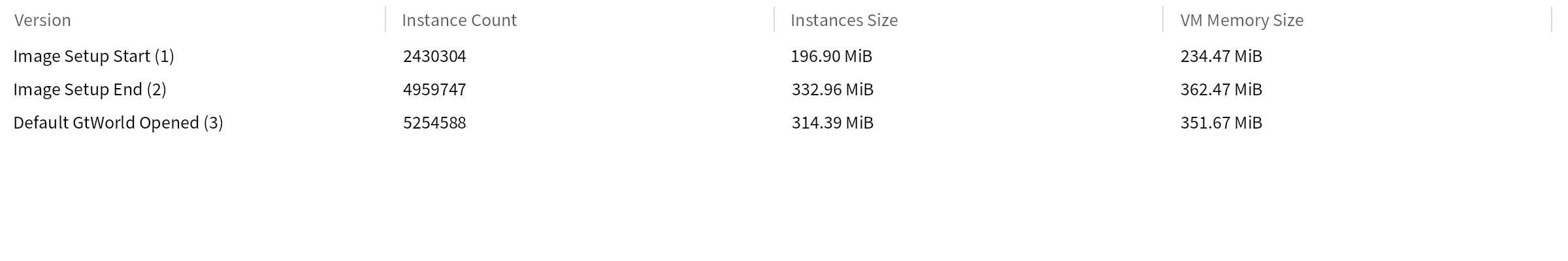 This page looks into analysing the size of the Glamorous Toolkit image. It also shows how to analyse the size of the image over time.