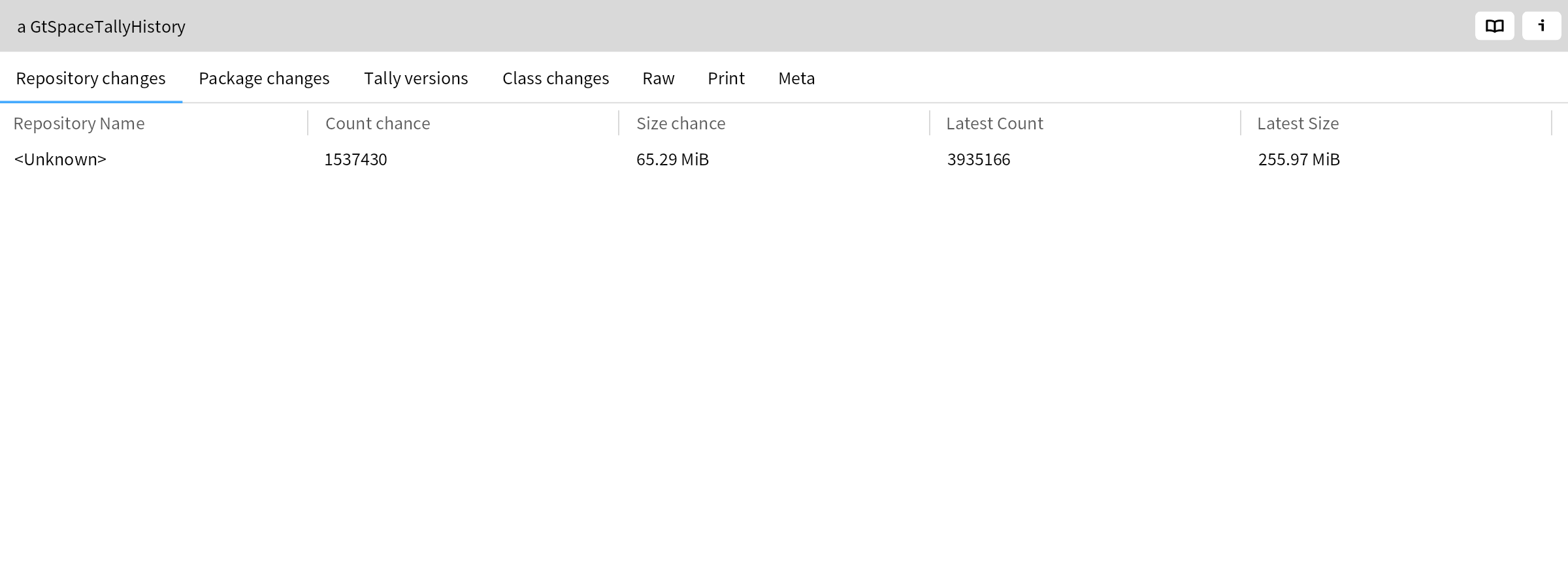 We can also explore the history by looking at the difference in memory by grouping instances by the package or repository defining the class of the instance.