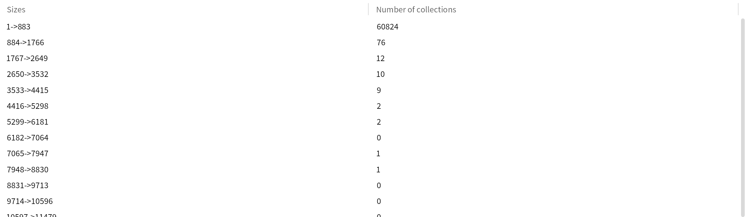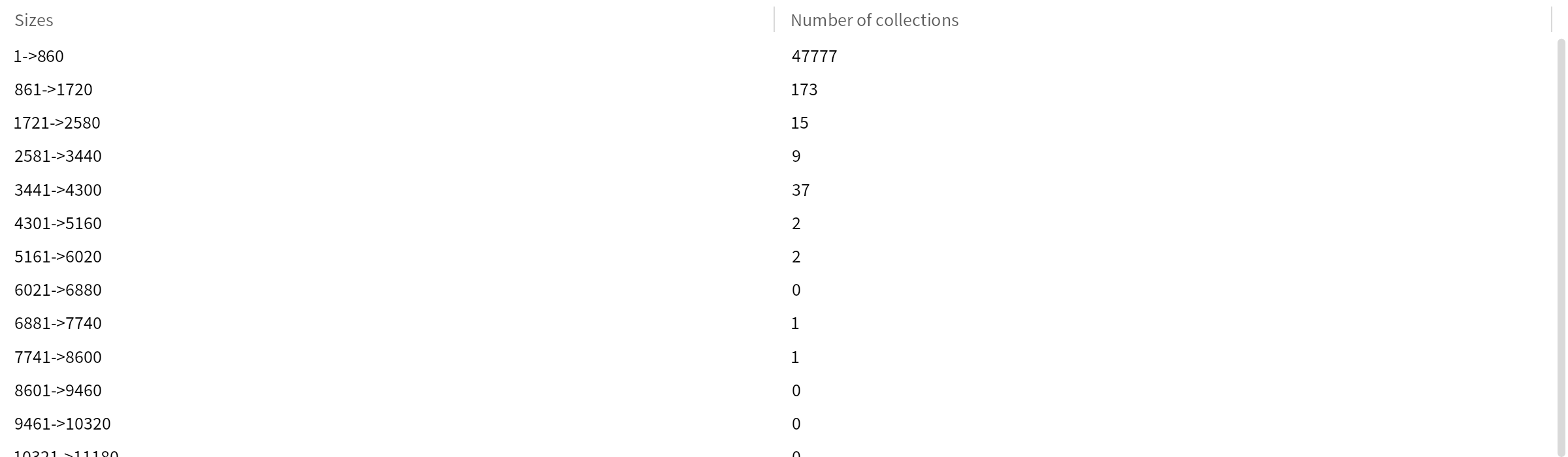 Analysing the size of the code index