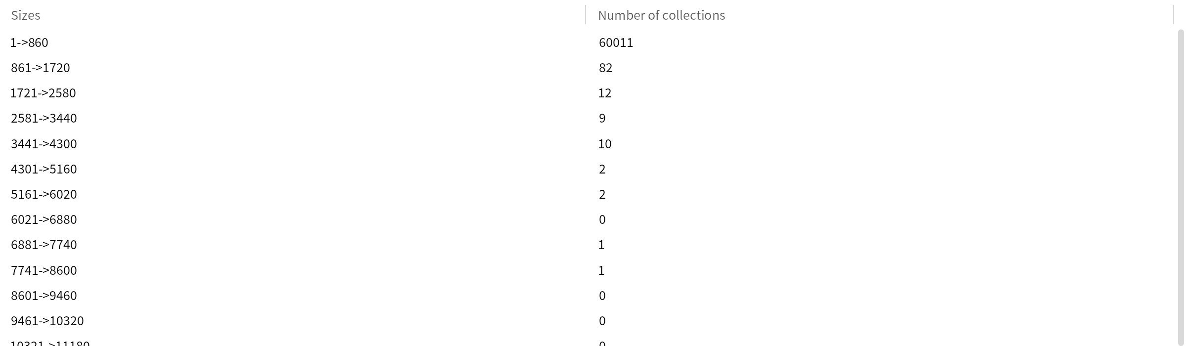 This page provides an analysis focusing on the size of the code index.