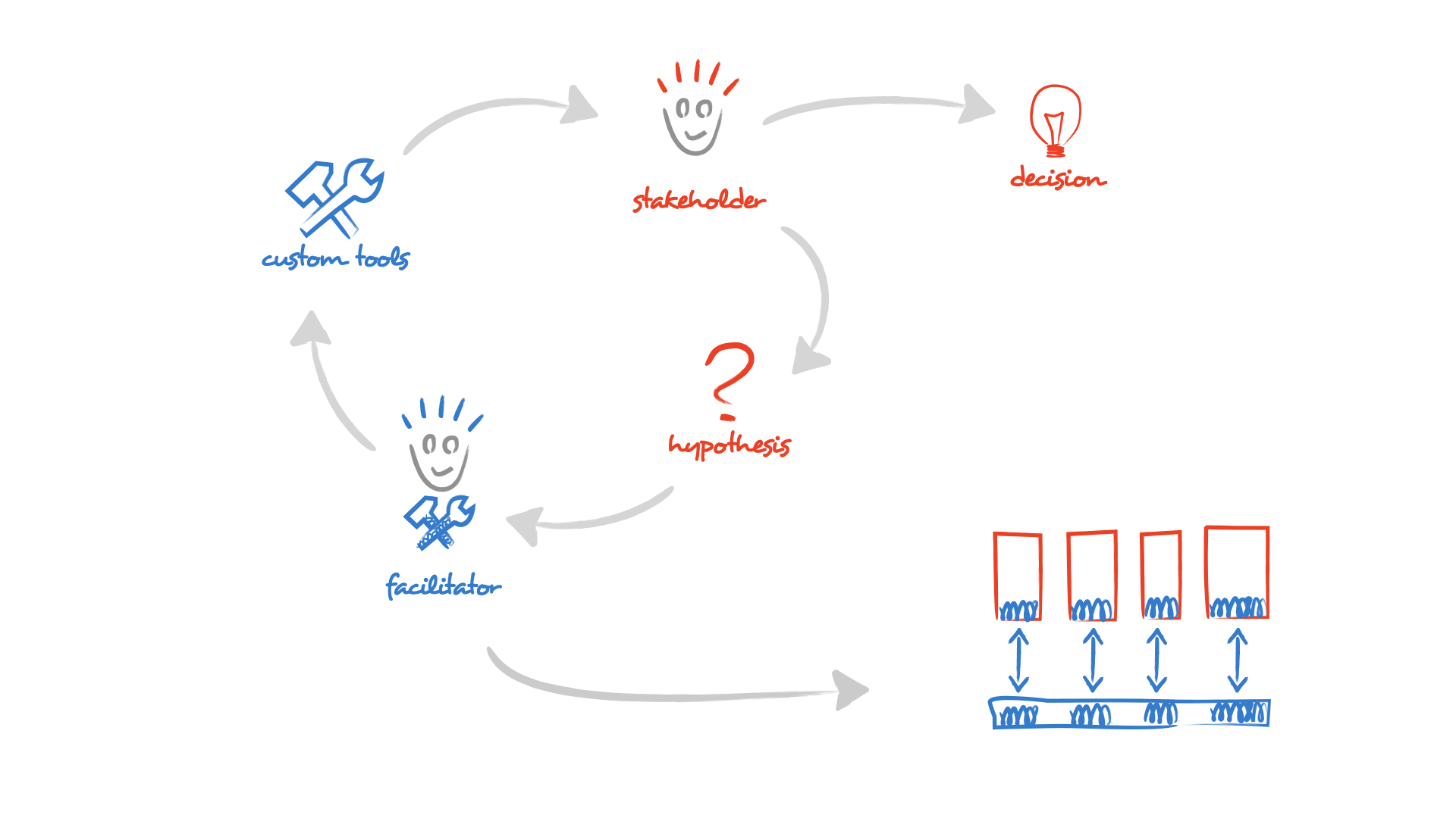 The facilitator knows how to link questions to the system, and to map these questions onto tools that provide answers directly from the system.